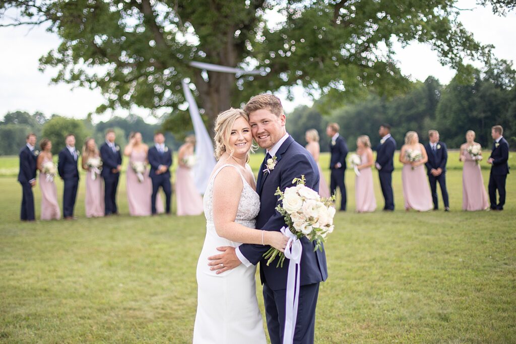 I love me a good back yard wedding & Kalcie & Mark pulled off one that we will never forget! On a gorgeous day in August, these two said I do in front of all their family and friends underneath an oak tree in Mark’s parents’ yard. I was absolutely in love with the combination of soft pink and navy blue – a classic & timeless color palette.